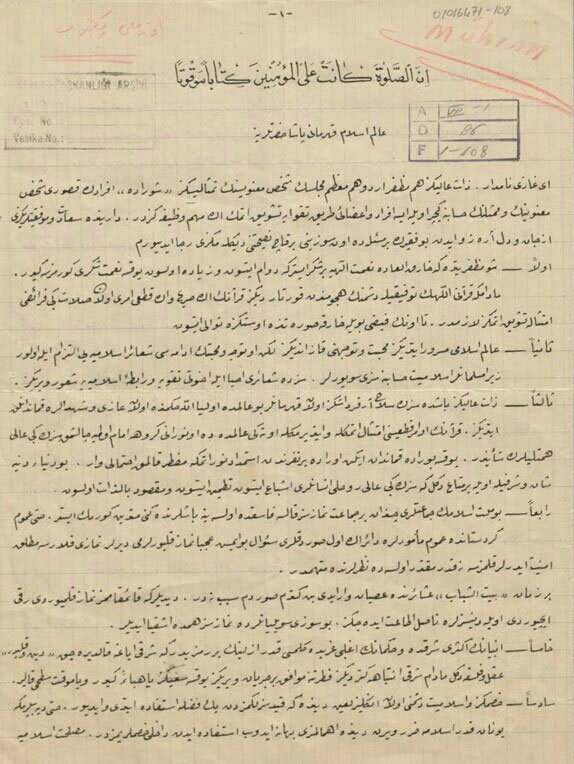 "İki cihanda saadet ve muvaffakiyetinizi canu gönülden dileyen bu fakirin, bir meselede on sözünü, birkaç nasihatini dinlemenizi rica ediyorum.