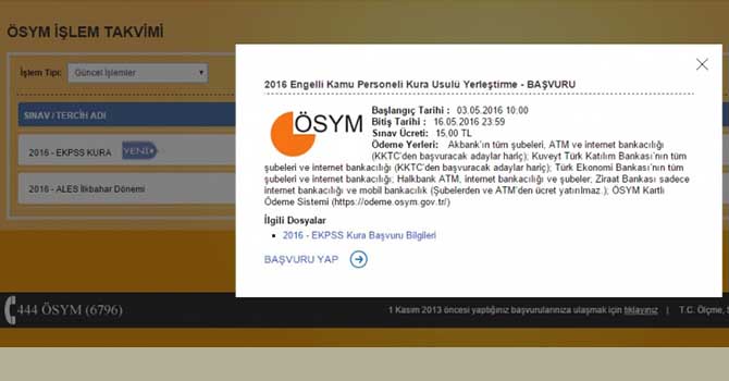 olarak belirlendi. Bankalar ile değil, ÖSYM'nin online ödeme sisteminden ödeme yapmak isteyenler ise https://odeme.osym.gov.tr/ adresine gidip, başvuru yaptığı sınavı seçip, T.C. Kimlik Numarasını girdikten sonra kredi kartı ile ödeme yapabilir.