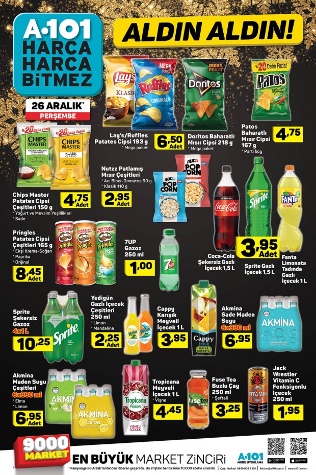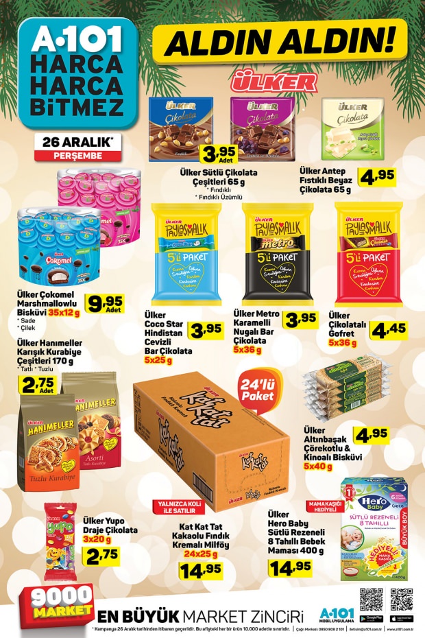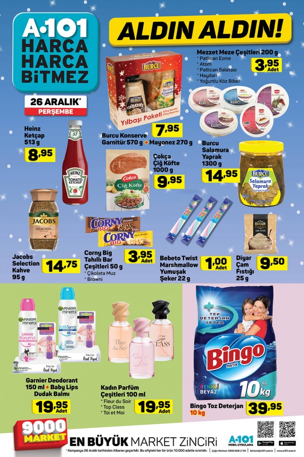 26 Aralık aktüel ürünler kataloğunu yayınlayan A101 yine birçok farklı çeşit üründe indirim yaptı.