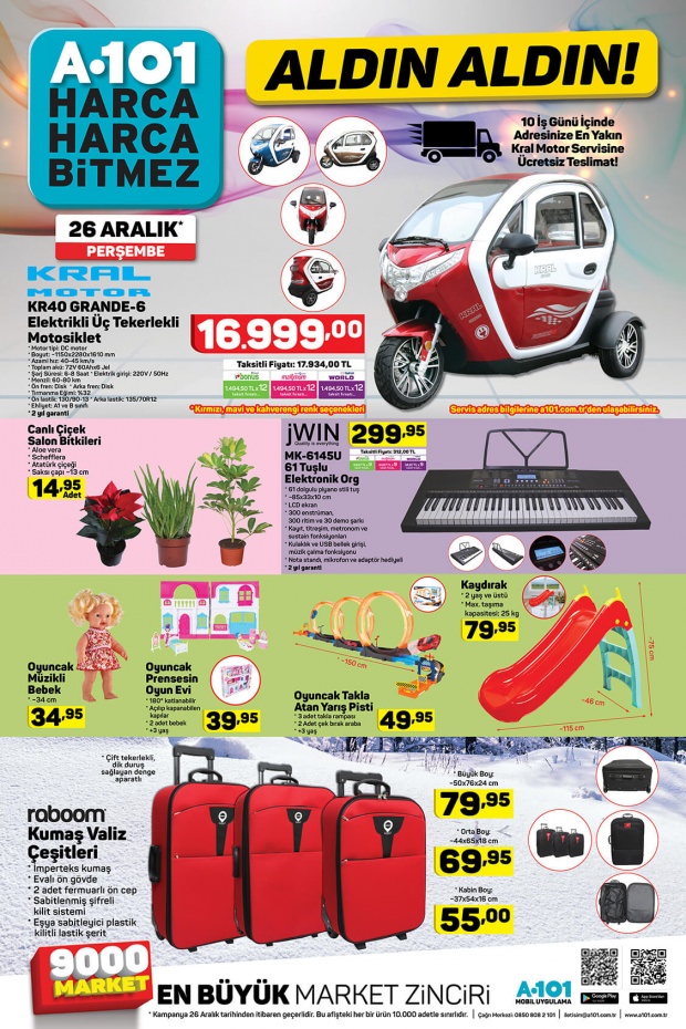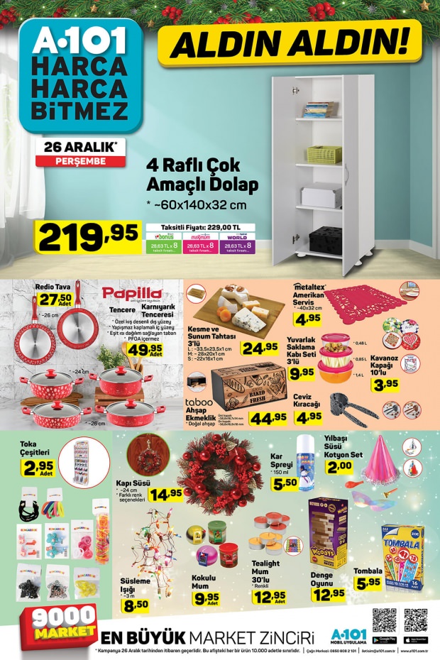 A101 tarafından 26 aralık aktüel ürünler kataloğu yayınlandı.