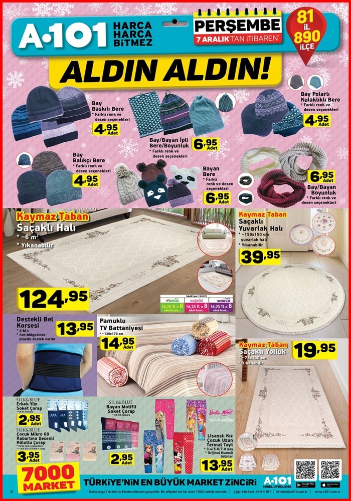 A101, Türkiye'nin pek çok noktasına yayılmış şubeleri ile müşterilerine kaliteli bir hizmeti ilke etmiş marketler zinciridir. Her hafta yayınladığı Aktüel ürünler kataloğu ile müşterilerini fırsatları konusunda bilgilendiren A101, 7 Aralık Perşembe de yepyeni ürünleri raflarında görücüye çıkarıyor.