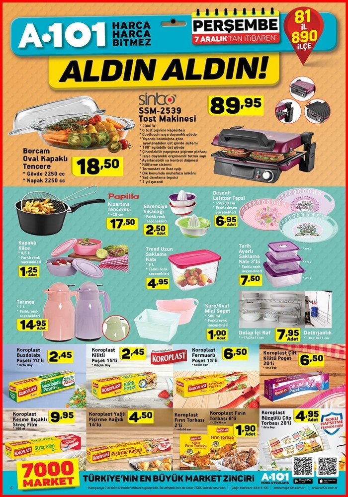 7 Aralık 2017 A101 İndirimli Ürünler Kataloğu | A101'de neler var?