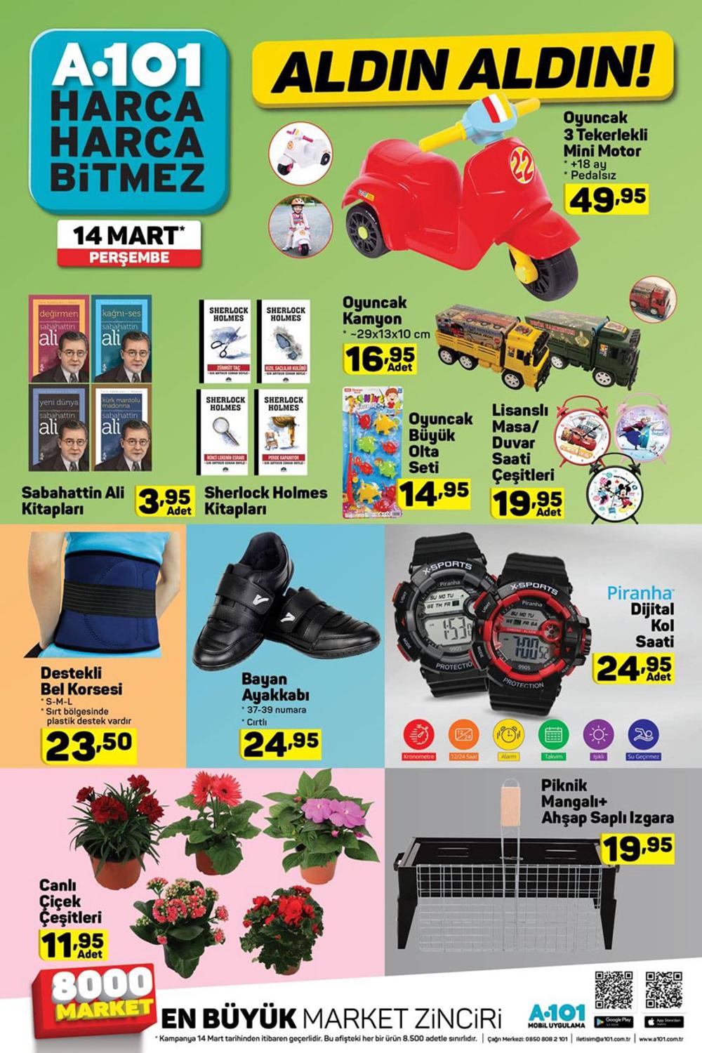 A101, Türkiye'nin pek çok noktasına yayılmış şubeleri ile müşterilerine kaliteli bir hizmeti ilke etmiş marketler zinciridir. Her hafta yayınladığı Aktüel ürünler kataloğu ile müşterilerini fırsatları konusunda bilgilendiren A101, 14 Mart'ta yepyeni ürünleri raflarında görücüye çıkarıyor.