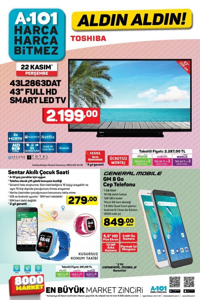 Türkiye'nin en geniş market ağına sahip firmalarından biri olan A101'in yeni Aktüel Ürünler Kataloğu yayınlandı. A101 22 Kasım 2018 indirimleri belirlendi. A101 yeni haftada yine dopdolu fırsatlar sunacak.
