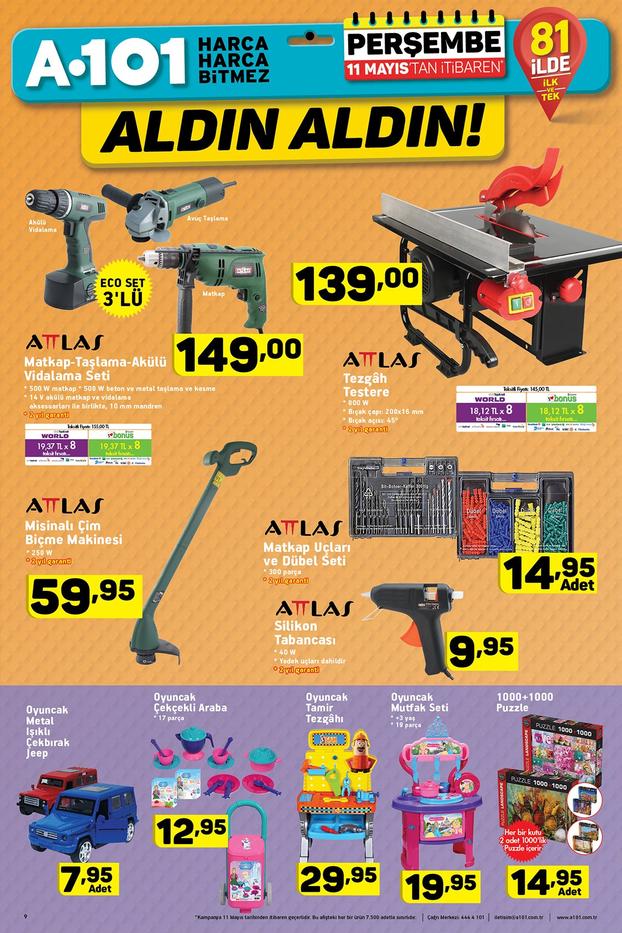 Bu hafta da A101 Aktüel Ürünler Kataloğu'nda yepyeni fırsatlar sizleri bekliyor. 11 Mayıs 2017 günü A101 sizi adeta fırsata boğacak.