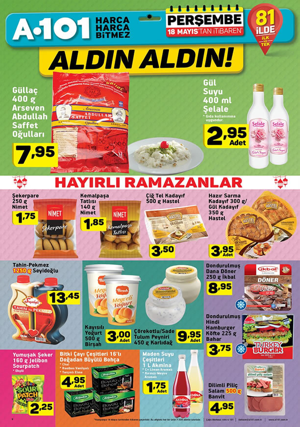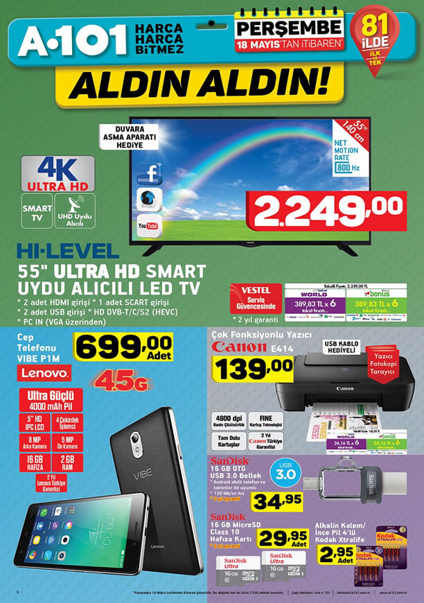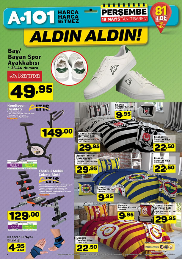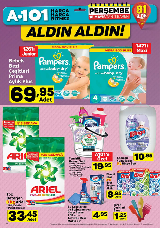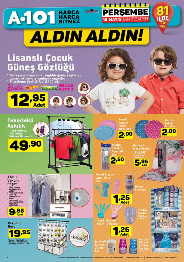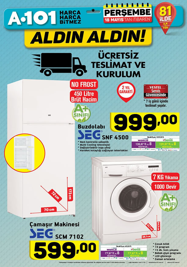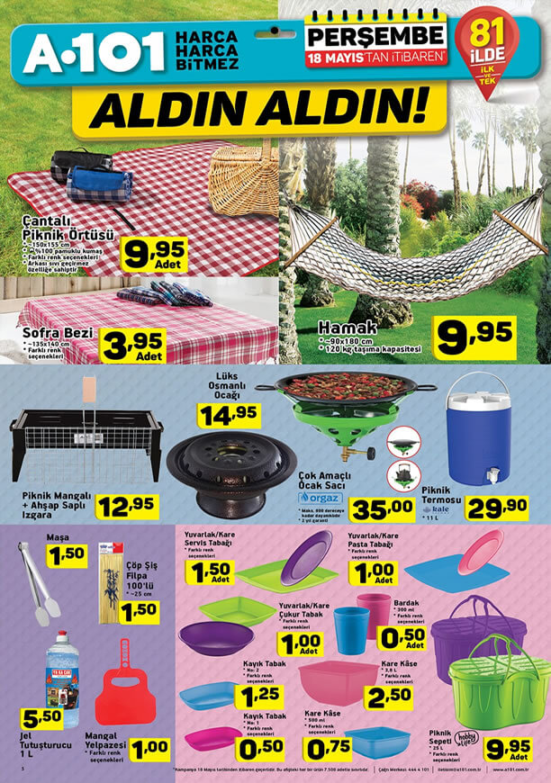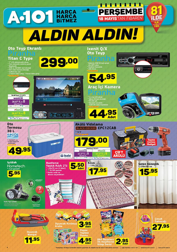 Türkiye'nin pek çok noktasına yayılmış şubeleri ile müşterilerine kaliteli bir hizmeti ilke etmiş marketler zinciridir. Her hafta yayınladığı Aktüel ürünler kataloğu ile müşterilerini fırsatları konusunda bilgilendiren A101, 18 Mayıs Perşembe da yepyeni ürünleri raflarında görücüye çıkarıyor.