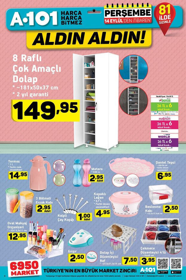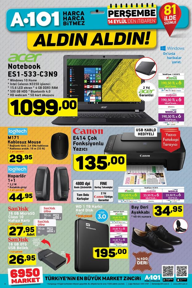 A101 Aktüel Ürünler Kataloğu, 14 Eylül Perşembe kataloğu merakla bekleniyordu. A101 yepyeni indirimler ve kampanyalar ile karşımıza çıkıyor. A101 yeni haftaya fırsat ürünleri ile giriyor. A101 14 Eylül 2017 kataloğu.