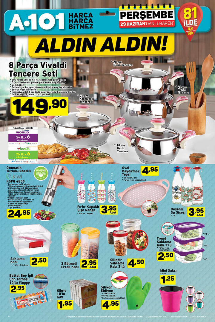 A101 Aktüel Ürünler Kataloğu, 29 Haziran Perşembe kataloğu merakla bekleniyordu. A101 yep yeni indirimler ve kampanyalar ile karşımıza çıkıyor. A101 yeni haftaya fırsat ürünleri ile giriyor. A101 29 Haziran 2017 kataloğu..