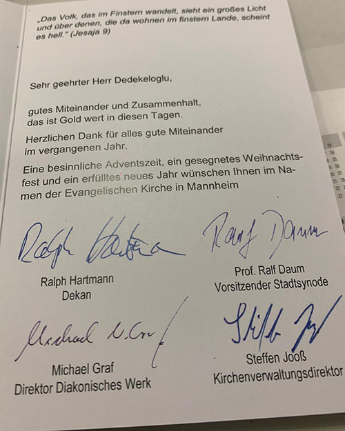 Gerek Mannheim şehrinde bulunan Duha kurumumuzun bünyesinde, gerek semt düzeyindeki farklı kurum ve kuruluşlarla, gerek Mannheim Büyük Şehir Belediyesi düzeyinde ve gerekse Baden-Württemberg Eyaleti düzeyinde, başta devletin resmî kurumları olmak üzere, Müslüman olan Cemiyetler, Katolik ve Protestan kiliseleri, eğitim kurumları olan okul, meslek okulları ve üniversiteler, sosyal ve sağlık alanında hizmet veren kurumlar ve diğer Sivil Toplum Kuruluşları ile ortak çalışmalarda bulunmak için gösterdiğimiz teşebbüslerimizin meyvelerini Elhamdulillah aradan geçen 10 seneye yakın bir dönem içerisinde görmeyi bizlere nasip eden Cenab-ı Allah’a şükürler olsun.