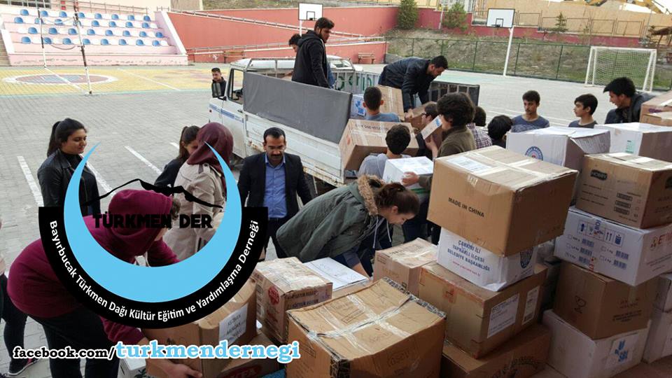 Okul öğrencileri ve öğretmenlerinin birlikte yürüttüğü bir proje ile, Halep'teki Türkmenlere gönderilmek üzere 710 koli yardım malzemesi topladı.
