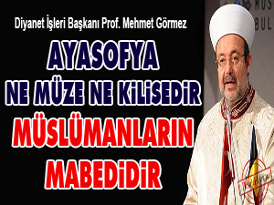 Diyanet İşleri Başkanı Prof. Dr. Mehmet Görmez, "Müze değildir. Ayasofya kilise değildir. Ayasofya, Fatih Sultan Mehmet'in hatta bütün Müslümanların ortak bir mabedidir" dedi