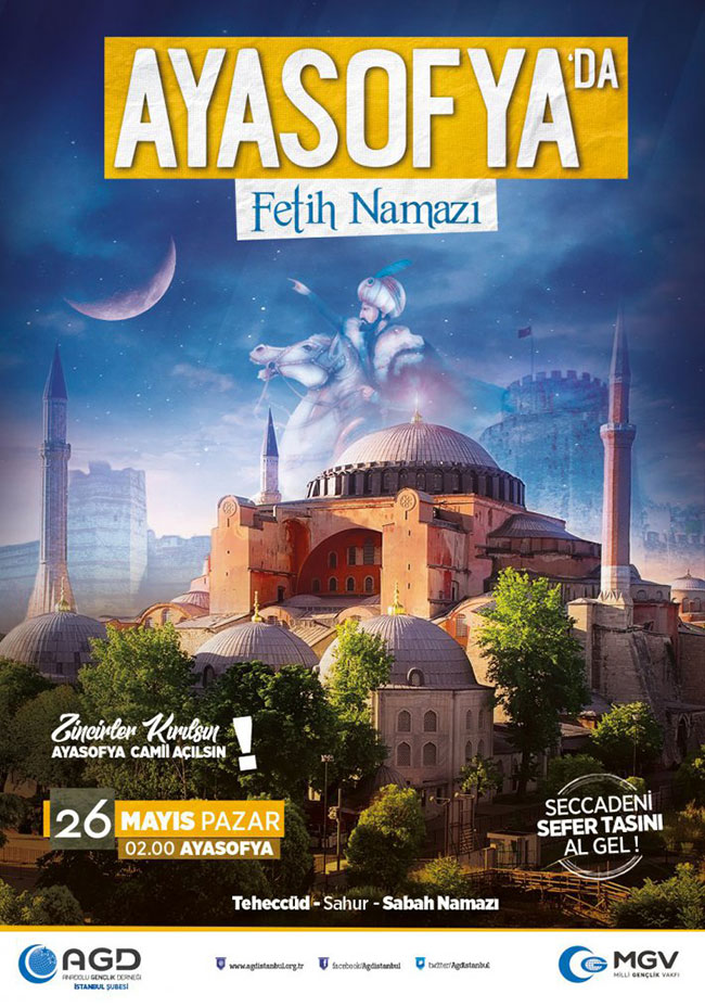 Milyonlar Ayasofya'nın artık açılmasını istiyor. 26 Mayıs'ta herkes Ayasofya'ya davetli