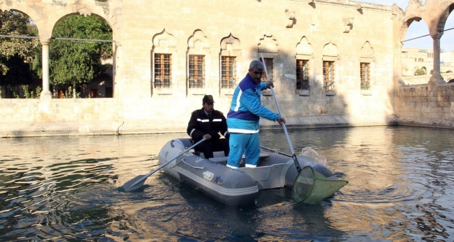 Eyyübiye Belediyesi Temizlik İşleri Müdürlüğü tarafından başlatılan temizlik çalışması, gün boyu devam ederken ilk defa gölete botla girilmesi görenleri şaşırttı. Güvenlik görevlisinin botu kullanması ve temizlik personelinin göleti temizlemesi vatandaşlar tarafından beğeniyle izlendi. Kutsal olarak bilinen, balıkların bulunduğu gölete botla giren temizlik personeli, suyun üzerinde ve içinde görünen tüm atıkları topladı. Kentin simgesi olarak bilinen Balıklıgöl’ün temizlenmesinin yanı sıra, camilerde ,yerli ve yabancı turistlerin ziyaret ettiği diğer alanlarda da temizlik çalışması periyodik olarak devam ediyor.