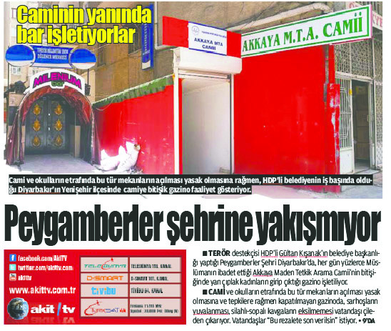 GAZİNONUN çok uzun bir süredir o bölgede faaliyet gösterdiğini gerekçe gösteren yetkili, “Sözünde durmayan Mecit Akkaya, Cami’yi yaptığı binanın hemen yanında bu gazinonun ve biraz ötesinde canlı müzik yapan bir kıraathanenin olduğunu bile bile bu Cami’yi yaptı. Biz de bu durum karşısında harekete geçerek, Cami’yi kapattık. Cami’nin ismi MTA Sigorta Camidir. Akkaya ismini sonradan bu Cami’yi buraya yaptıran işadamı koymuştur” şeklinde konuştu.
