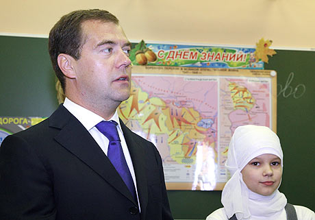 Rusya Devlet Başkanı Dmitri Medvedev, 1 Eylül'de başlayan yeni eğitim öğretim sezonunun açılışını, aralarında başörtülü bir öğrencinin de bulunduğu sınıfta yaptı. Medvedev, başörtülü ilkokul öğrencisi ile aynı karede poz verdi. Rusya'da orta öğrenim ve üniversitelere öğrencilerin başörtüleri ile gitmelerine izin verilirken, öğretmenler de başörtülü olarak ders verebiliyor.