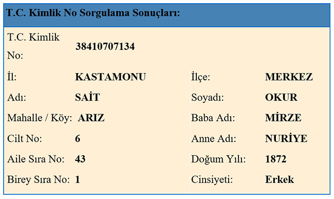 Bediüzzaman’ın beyanıyla ilk nüfus ve ikamet bilgilerini İstanbul’a gelişinde doldurduğunu nüfus tezkeresinden öğreniyoruz. Söz konusu tezkereyi aşağıya alıyoruz.