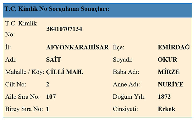 Bediüzzaman’ın Afyonkarahisar Nüfus Kaydı Bilgileri