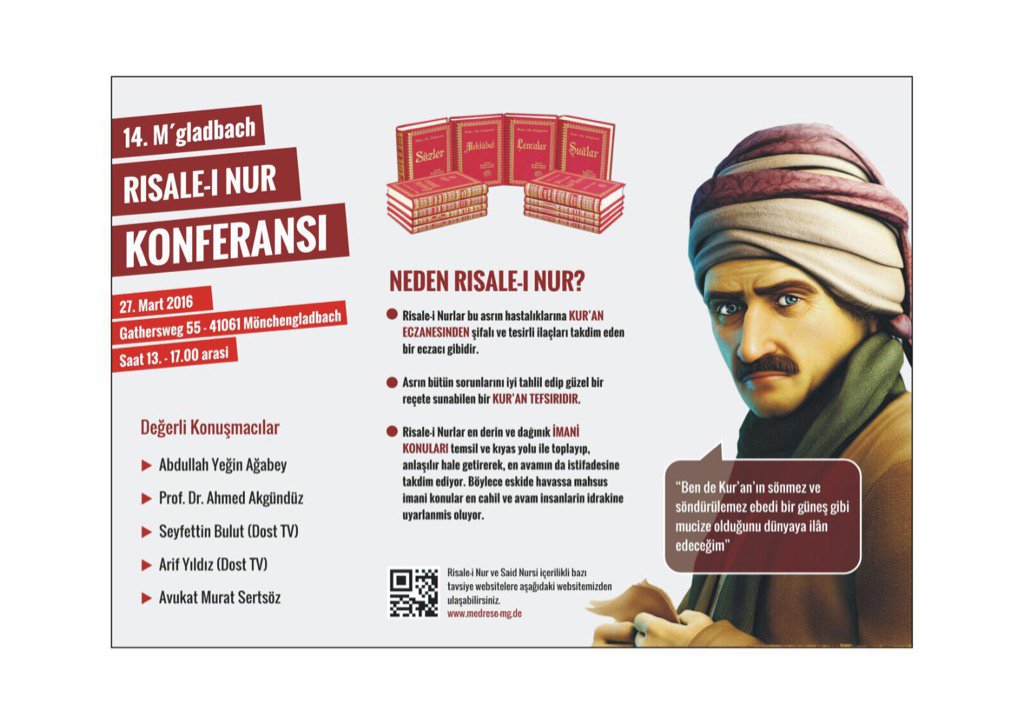 14. Mönchengladbach Risale-i Nur konferansı 27 Mart 2016 tarihinde Mönchengladbach'da gerçekleştirilecek.