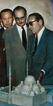 Merhum ve kahraman; Menderes, Zorlu ve Polatkan, Ankara Maltepe Camii maketini incelerken..