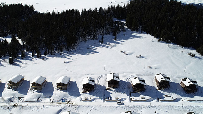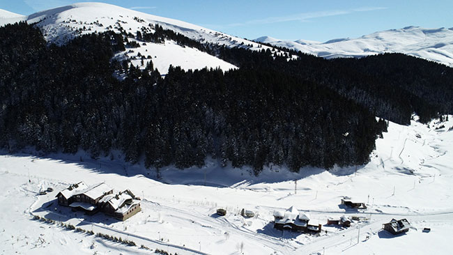 Yaylada ve tabiat parkında çam ağaçlarının, yemyeşil çayırların karla kaplanması, seyrine doyum olmayan görüntüler oluşturuyor.
