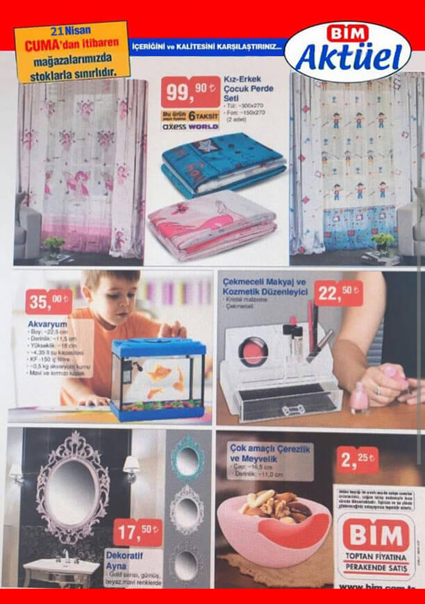 21 Nisan Bim aktüel kataloğuna yer alan indirimli ürünlerden bazıları şu şekilde: