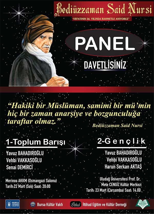 Bediüzzaman Said Nursi Hazretlerinin 56. vefat yıldönümü Bursa'da iki günlük programla yad edilecek.