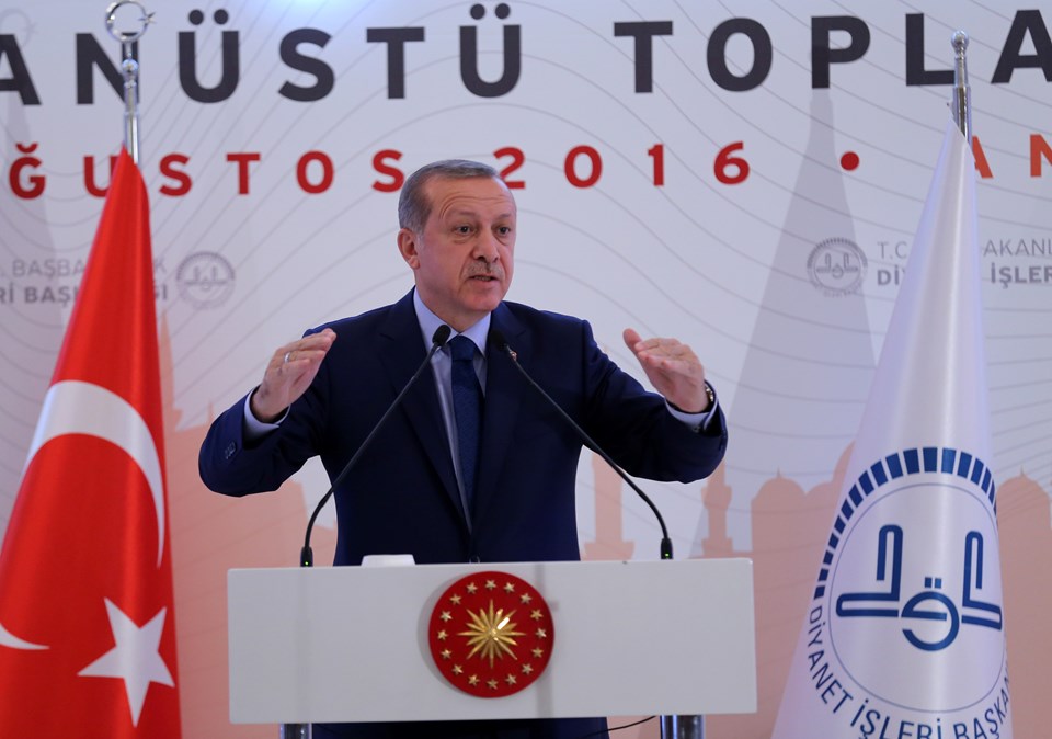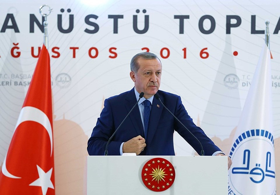 Olağanüstü Din Şurası'nda konuşan Cumhurbaşkanı Erdoğan, "Bu hain örgütün gerçek yüzünü çok daha önceden ortaya dökememiş olmanın üzüntüsü içerisindeyim" dedi ve ekledi: Rabbim de milletim de bizi affetsin.