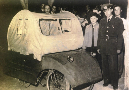 Binbaşı Hayri Bey, bisiklet ve motorsiklet birleşiminden kendi imal ettiği ve ‘TENEZZÜH’ adını verdiği vasıtanın başında görülüyor