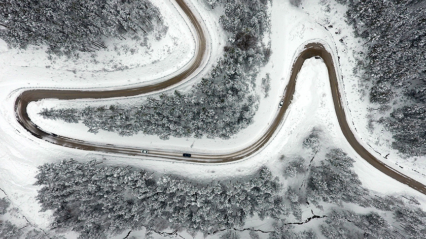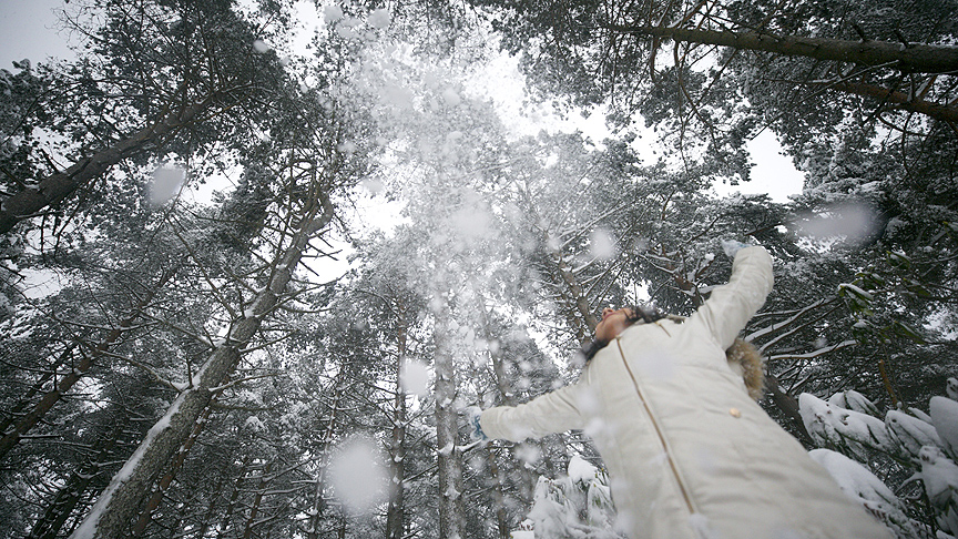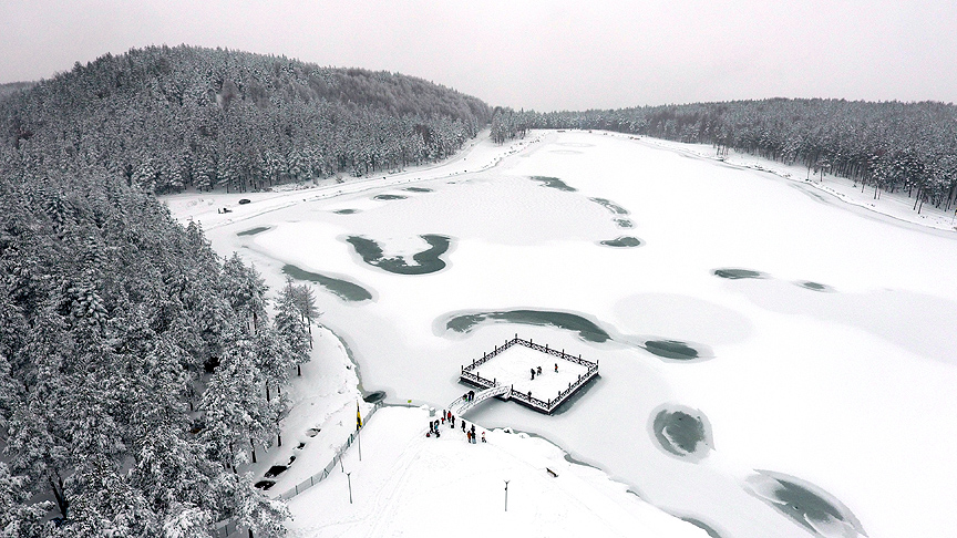 Ormanlarının üzerine kar yağan Düzce'de pek çok yerde yeşil ve beyazın ahengi mevcut.