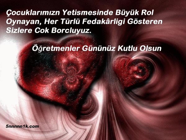 Çocuklarımızın yetişmesinde büyük rol oynayan, her türlü fedakarlığı gösteren sizlere çok borçluyuz. Öğretmenler Gününüz Kutlu Olsun.Anne ve babamdan sonra en güvendiğim insana öğretmenime şükranlarımı sunarım.