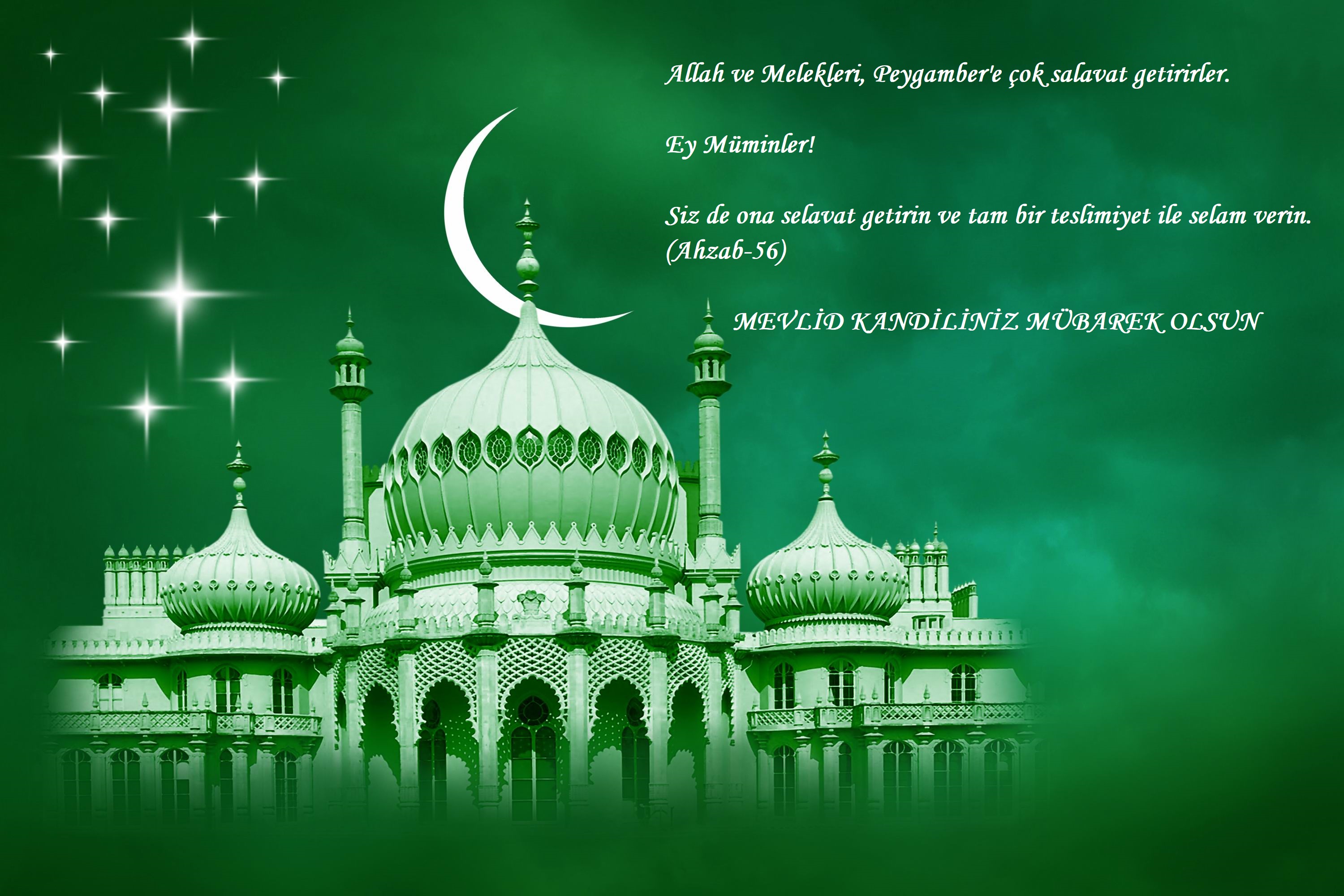 -'Süphesiz, Allah ve Melekleri Peygambere Salat Ediyorlar.' Ey iman edenler! Sizde ona Salat edin, Selam edin.Mevlid Kandiliniz Mübarek Olsun