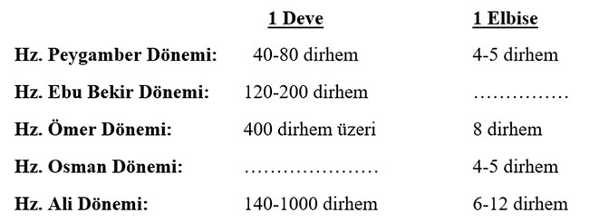 Hz. Peygamber döneminden Hz. Ali döneminin sonuna kadarki yaklaşık 40 yıllık enflasyonu gözlemleyebileceğimiz bazı fiyat verileri şu şekilde: