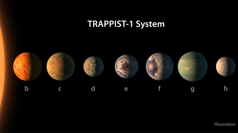 NASA, Güneş Sistemi dışında Samanyolu Galaksisi içindeki Kova takımyıldızı içinde Trappist-1 ismi verilen bir yıldızın yörüngesinde yeni keşfedilen 7 gezegenin Dünya'ya benzerlik gösterdiğini bugünlerde açıkladı. Bu gezegenlerden üçünün, su varlığını ve canlı yaşamını destekleyebilecek yapıda olabileceğini söyledi. Trappist-1 yaklaşık Jüpiter büyüklüğünde sönük bir yıldız olup etrafında sıkı bir ağ oluşturan gezegenlerin karasal ve kayalık yapıda bir yıldızdır. Bu konuda yapılacak daha teferruatlı açıklamalar için 10 yıl daha araştırma yapmak gerekiyormuş.
