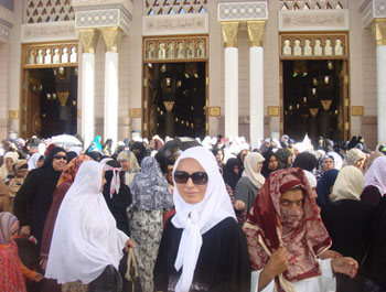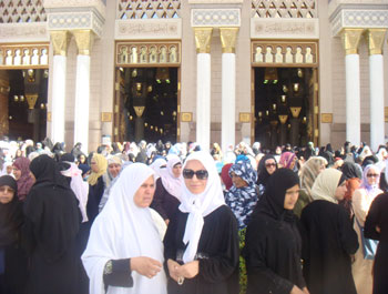 Medine’yi Münevvere’de yeni bir uygulama başlatmışlar. Ziyaretçileri ülke ülke ayırmışlar. Başta zor bir uygulama gibi gözükse de kolaylıkları daha fazla. Sıramızı beklerken, görevli kadınlar ilgimi çekti. “Mürşide” adı veriliyor bu kadınlara. Fotoğraf makinamı güvenliğe teslim ederken görevli kadınlardan birisi Türkçe konuşmaya başladı. Biraz sohbet ettik ve kendisiyle röportaj yapıp yapamayacağımı sordum kendisine. “Akşam namazından sonra gel konuşuruz” dedi.