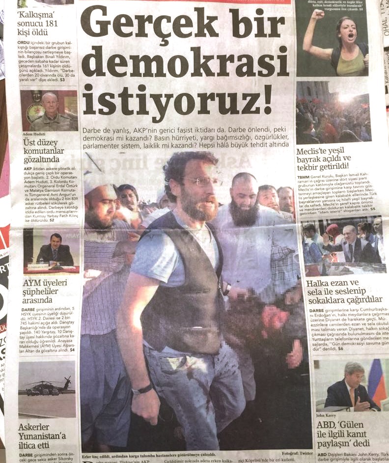 Ülkemizde yaşanan en hain, en kalleşçe darbe girişimi olan 15 Temmuz›da Boğaziçi Köprüsü›nde saatler boyunca sivil halka ateş açıldı. Yüzlerce sivil vatandaş ve polis şehit edildi. Yaşananların vahameti kısa sürede ortaya çıksa da darbesever medya köprüde yaşananları görmezden geldi. Tek bir fotoğraf karesi üzerinden darbenin artçısı olabilecek bir iç savaşın fitilini ateşlemeye çalışan Birgün, Sözcü ve Cumhuriyet gazeteleri kullandıkları fotoğrafla 'IŞID'çiler Köprü'de askerin başını kestiler'
