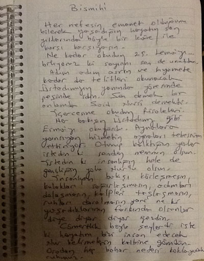 Sizi görünce Üstadımı hatırlıyorum. Yanınızda konuşmak bana ağır geliyordu. Sizi konuşurken de susarken de dinlemek güzeldi. Bizim haklarımız -varsa- helal olsun. Sizlerden aldığımız Nur emanetini nefeslerimiz oldukça taşımaya kararlıyız; müsterih olunuz. Ağlamak istiyorum. Fırtınalı hayatını düşünüyorum. Tarifsiz haller doluyor içime. O ne gayret öyle! Üstadı görenlerde bir başkalık oluyor demek ki! Şâfi-i Hakiki'den 25. Lema'yı şefaatçi kılarak dünyevî ve uhrevî şifalar diliyorum. Siz zaten insanlığın reçetesi Kur'an'dan süzülen Risale-i Nur'un ebedî şifa olduğunu biliyordun. insanlığa ebedî şifayı sunanlara da ebedî şifalar diliyorum. Rahmetli Ali Mutlu ağabeyim de bir gün telefonda kendi ömründen size vermesini istemişti Rabbimden. İşte seni böylesine sevenler var. Siz ömrünüzü hiçe sayıp insanlığın temel ihtiyacını nefes nefese taşıdınız. Saatlerce sizi yazmak, konuşmak isterim. Sizi Allah için seviyorum. Allah'a emanet olunuz.