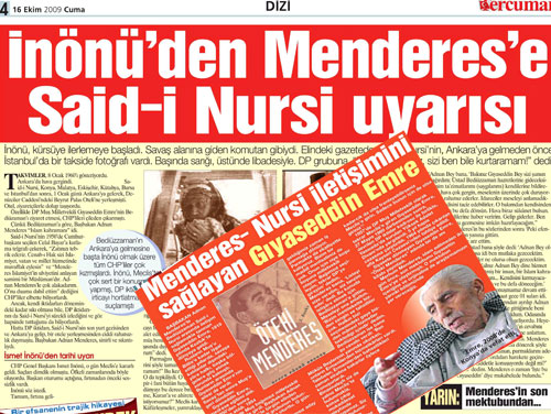 İLGİLİ HABER: Menderes'ten S.Nursi'ye selam