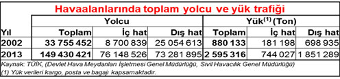 Son 12 yılda havayolu ile iç hatlarda taşınan yolcu sayısı 9, dış hat hatlarda ise 3 katına çıkmıştır.