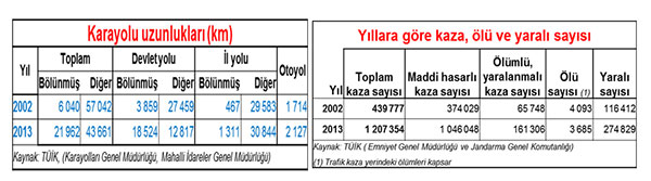 Karayollarında taşınan yolcu ve yük taşımalarının artmasına rağmen ölüm sayısının azalmış olmasını; karayolu taşımacılığında en fazla artışın otoyollarda olması ve alınan güvenlik tedbirleriyle, kamuoyunun bilgilendirilmesiyle açıklanması mümkündür.