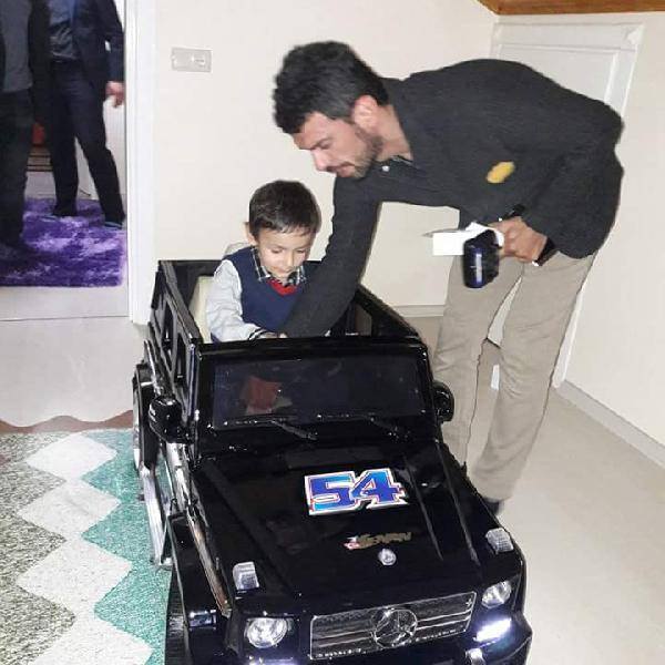 Asım Eren akülü arabaya bindi. Akülü arabanın üzerinde Sakarya'nın plakası olan 54 yazması dikkat çekti.