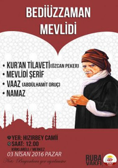 Ruba Vakfı Kırklareli'de Bediüzzaman Mevlidi düzenliyor