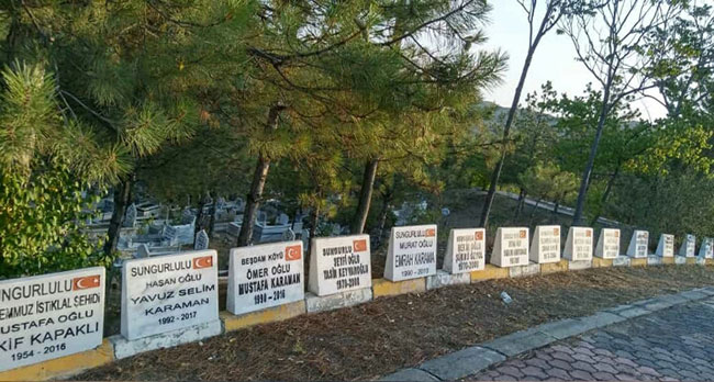 Muallim Sungur ile, şehrin güneyindeki Karşıyaka Kabristanı'ndaki Şehitlik Tepesi'ne yöneldi ve selamlayıp Fatiha okuduk.