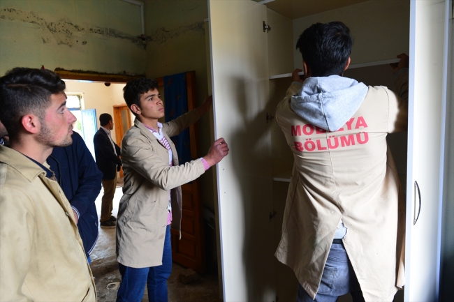 Evlerde inceleme yaparak ihtiyaç listesi çıkaran öğrenciler, buna göre tamirat, boya, badana, elektrik işlerini yapıyor. Öğrenciler, atölyelerde ürettikleri kapı, elbise ve mutfak dolabı, ayakkabılık gibi ürünleri de evlere kendi elleriyle yerleştiriyor.