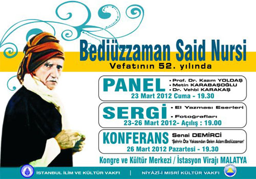 İstanbul İlim ve Kültür Vakfı ile Niyazi-i Mısri Kğltür Vakfı'nın düzenlediği hafta 23 Mart 2012 Cuma günü Bediüzzaman Said Nursi sergisi ile başlayacak. Yine aynı gün saat 19.30'da panel düzenlenecek.