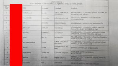 Operasyonlar kapsamında, TBMM Genel sekreter yardımcıları ve daire başkanları olmak üzere 30 yönetici açığa alınmıştı. TBMM Başkanı İsmail Kahraman'ın Baş müşaviri Cemal Öztaş ile İhsan Özgen, Cemil Tutal, Hasan Erikli olmak üzere üç başkan yardımcısı ile eski Meclis Başkanı Bülent Arınç döneminde işe alınan bir yakını da yer almıştı. '' Esma Bekar, 20 yıllık memur ve muhteşem bir ülkücüdür'' diyerek alınmasına tepki gösteren eski TBMM Başkanvekili Meral Akşener'in sekreteri de ihraç edilen 41 meclis çalışanı arasında yer aldı.
