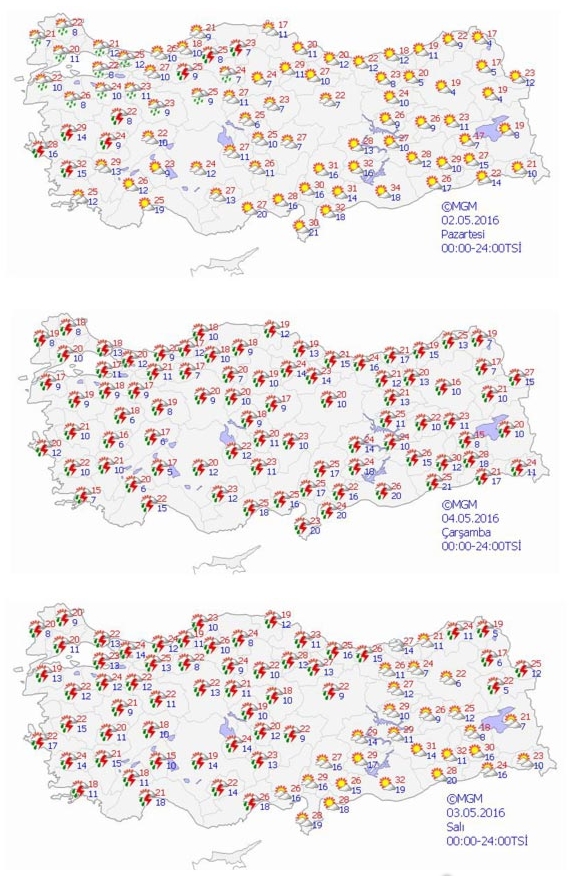 İşte önümüzdeki haftanın hava durumu tahmin haritaları: