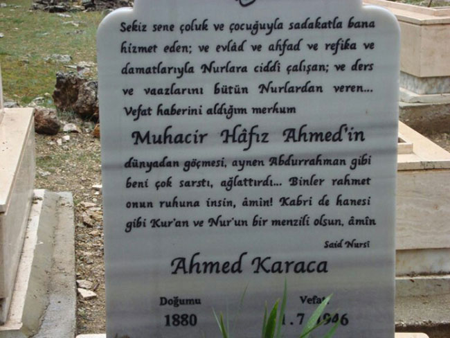 "Hem Muhacir Hafız Ahmed’i hem bana, hem Nurlara alâka ve sadakat noktasında Nurların birinci talebesi ve fedakâr bir nâşiri kalben hissetmiştim.