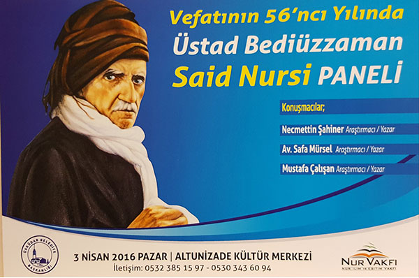 Nur İlim ve Kültür Vakfı vefatının 56. yılında Bediüzzaman Said Nursi'yi anma paneli düzenliyor.