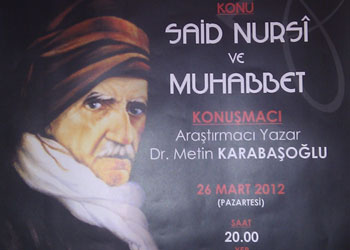 Risale Haber'de dünün manşetleri 19 Mart Pazartesi gününün manşetleri İmam Hatip’liler Kur'an ve ezan için yarıştıİmam Hatip Liseleri arası yarışma Bafra ilçesinde yapıldı Çocuğun başörtüsüne karışmak faşistlikÇınar, kız çocuklarının başını örtmesine karşı çıkanların "faşistik bir kültür"ün sonucu olduğunu söyledi Suffa Vakfı Bediüzzaman'ı hatimlerle anacakÜstad Bediüzzaman Said Nursî, vefatının 52. yıldönümünde dualarla anılıyor İngiliz medyası: ABD Afgan çocuğu öldürüyorAfganistan'a sözde "demokrasi ve medeniyet"! götürmek isteyenler meğerse çocuk katilleri imiş Mazlumder’den Said Nursi’yi anma töreniÇelik, Şanlıurfa’da Balıklı Göl Dergâh Camii (Defin yeri)'nde yapılacak anma törenine tüm vatandaşları davet etti Hutbede para istenmesinden bıktık!Sözü dolandırmadan, çok uzun yılladır birçok mümin gibi içimi kanatan bir problemi dile getirmek istiyorum Said Nursi'nin sözlerini çarpıttı bir de uyardı!Erdost, dindar gençlik tartışmalarını eleştirirken Said Nursi ile ilgili yanlış bilgilerini de aktardı Kur'an ile Müslümanlığı öğrenmek istiyorumAndre Francisco Moritz, “Türkiye’ye geldiğimde herkes Müslüman olduğu için Kur’ân'ı merak ettim." Suriye'den imdat çığlıkları gittikçe yükseliyorTürkiye'ye sığınan muhalif aktivistlerin aktardığı manzaralar insanı dehşete düşürecek cinsten Said Nursi’nin Münazarat’ını kim, nasıl gördü?Münazarat Sempozyumunda konu başlıkları belli oldu Risale Haber'de dünün manşetleri18 Mart Pazar gününün manşetleri Adıyaman Bediüzzaman Haftasına hazırAdıyaman, vefatının 52. yıldönümünde Bediüzzaman Said Nursi’yi çeşitli etkinliklerle yad edecek Molla Sabri Alkış dualarla uğurlandıAlkış, Yüksektepe köyünde kalabalık bir cemaatin eşliğinde defnedildi Risale-i Nur'dan vecizeli duvar kağıdı - [indir]Günün duvar kağıdı Allah'a inanan, ya hayır konuşsun ya sussunGünün Hadis-i Şerifi... O (cc), yeri yayıp döşeyendirGünün Ayet-i Kerime meali... Eser mükemmelse yapan da mükemmeldirGünün Risale-i Nur dersi