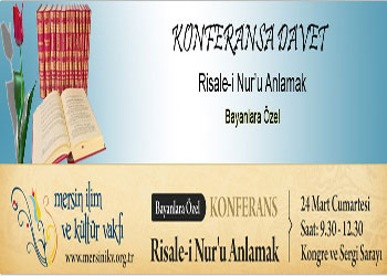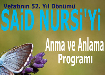 Risale Haber'de dünün manşetleri 23 Mart Cuma gününün manşetleri Said Nursi'li medeniyetin çocuğuyumKaplan, "ben Said Nursî'lerin öncülük ettiği, asil ve mütevazi bir medeniyetin çocuğuyum" dedi. Validen, Sultan Reşad'a Said Nursi mektubuBediüzzaman'ın vefat yıldönümünde Osmanlı arşivlerinden çıkan belgeye göre... Gazze halkı karanlıkta yaşıyorMısır'la Hamas hükümeti arasındaki anlaşmazlık yüzünden her gün 18 saat elektrik kesintisinin uygulanması, Gazze'de hayatı durma noktasına getirdi Said Nursi'yi anma ve anlama programı25 Mart Pazar saat 12:00'de düzenlenecek olan programın ayrıntıları şöyle Dindar Cumhuriyet kavramı Said Nursi'ye aitYeni Şafak gazetesinde Mustafa Çalışan'ın yazdığı Bediüzzaman yazısı Sözlük sitelerinde de gündem #SaidNursi#saidnursi etiketi internet medyasında olduğu gibi popüler sözlük sitelerinde de gündeme oturdu Sakarya Belediyesi Bediüzzaman'ı anıyor"Bediüzzaman’ı An(la)mak" konulu bir konferans düzenlenecek Mehtap TV'de Bediüzzaman'ı anma programıMehtap TV Bediüzzaman Said Nursi'yi özel bir yayınla anıyor Bediüzzaman dinlense Kürt sorunu hallolurduBediüzzaman’ın meşveret ve adalet çağrıları karşılık bulsaydı Mersin'de Risale-i Nur'u anlamak konferansıŞehrin bilboardlarına Bediüzzaman ve Risale-i Nur vecizelerinin bulunduğu afişler asıldı 9 Eylül üniversitesinde mescid sözü verildi9 Eylül Üniversitesi'nde mescid açılması için imza toplayan öğrenciler olumlu cevap aldıklarını belirttiler Twitter'da #saidnursi #ataturk atışmalarıBediüzzaman'la ilgili bir çok twit yazılırken Atatürkçüler de harekete geçti Yemekler israf olmasın, çöpe gitmesinDüşününce, ne çok israf ediyoruz! Boğaziçili öğrencilerden Said Nursi programıBu acizane, fakirane ama samimane ve halisane yapılan programda görüşmak dileği ile.. Risale Haber'de dünün manşetleri22 Mart Perşembe gününün manşetleri Said Nursi’nin vefatında neler oldu?-VİDEOBediüzzaman Hazretlerinin talebelerinden Bayram Yüksel Said Nursi’nin vefat anını ve yaşananları anlatıyor Her cemaat en az iki genç getirmeliGörmez, her cemaatin en az 2 genç getirmesini istedi. Vefatının 52. yılında Bediüzzaman'ı anıyoruzBediüzzaman Said Nursi'yi vefatının 52. yılında rahmet ve minnetle anıyoruz... Kimin en son sözü ‘Lâ ilâhe illallah’ olursaGünün Hadis-i Şerifi... Gerçekten, güçlükle beraber kolaylık vardırGünün Ayet-i Kerime meali... Bir Said değil, bin Said feda olsunGünün Risale-i Nur dersi